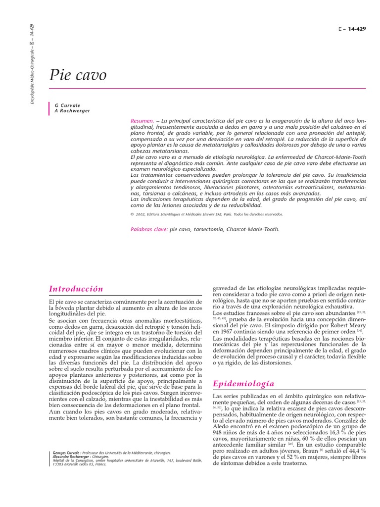 Cualquier referencia a este artículo debe incluir la mención del artículo original: Curvale G et Rochwerger A. Pieds creux. Encycl Méd Chir (Editions Scientifiques et Médicales Elsevier SAS, Paris, tous