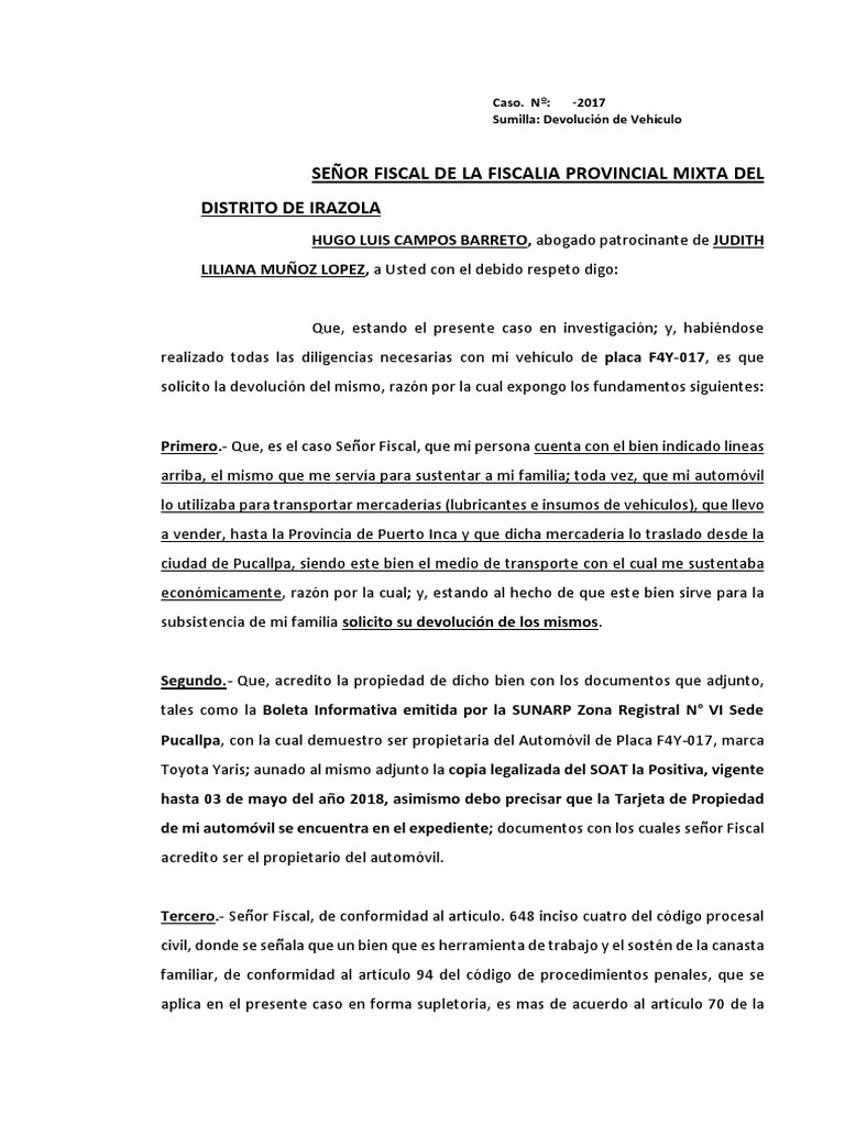 de mi automóvil se encuentra en el expediente; documentos con los cuales señor Fiscal