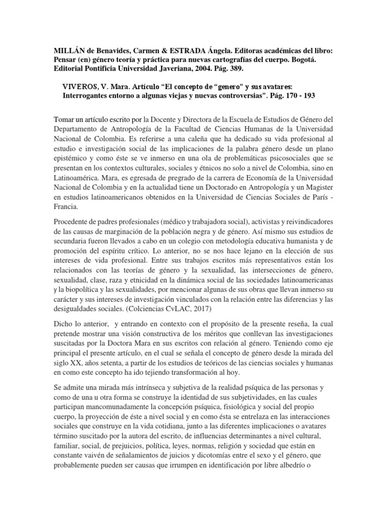 VIVEROS, V. Mara. Artículo “El concepto de “genero” y sus avatares: