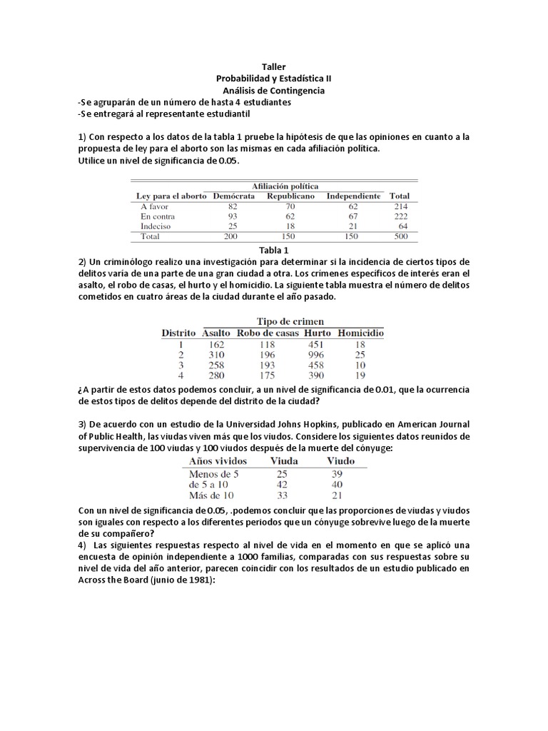 1) Con respecto a los datos de la tabla 1 pruebe la hipótesis de que las opiniones en cuanto a la