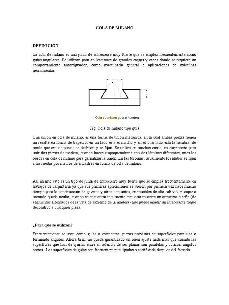 Una unión en cola de milano, es una forma de unión mecánica, en la cual ambas piezas tienen