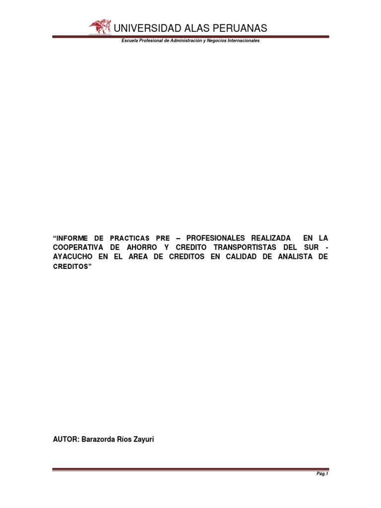 El presente informe es realizado por Barazorda Ríos Zayuri, estudiante de la