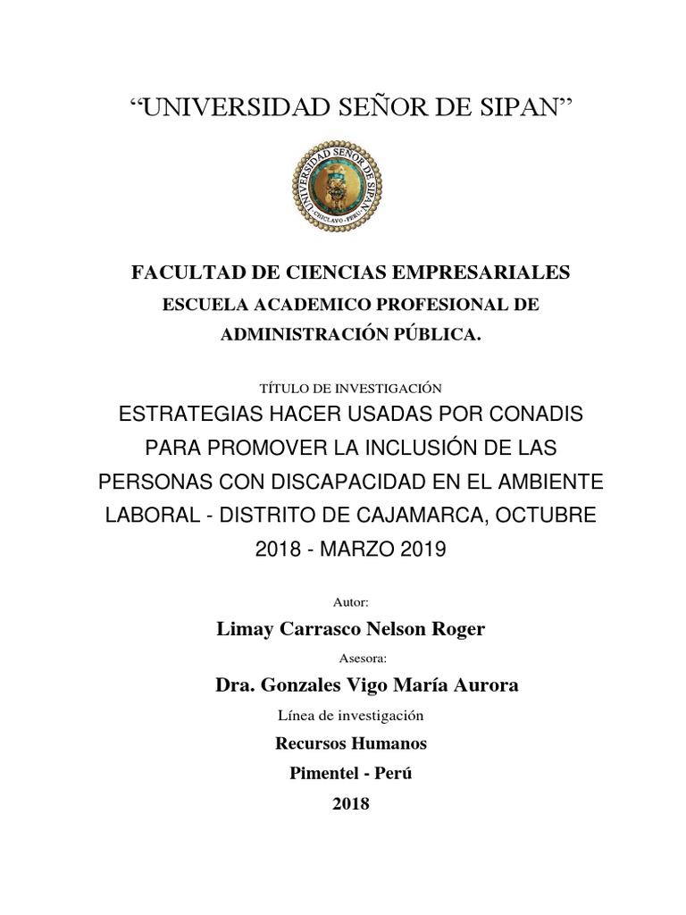 Discapacidad en el ámbito laboral - Distrito de Cajamarca, octubre 2018 - marzo 2019”