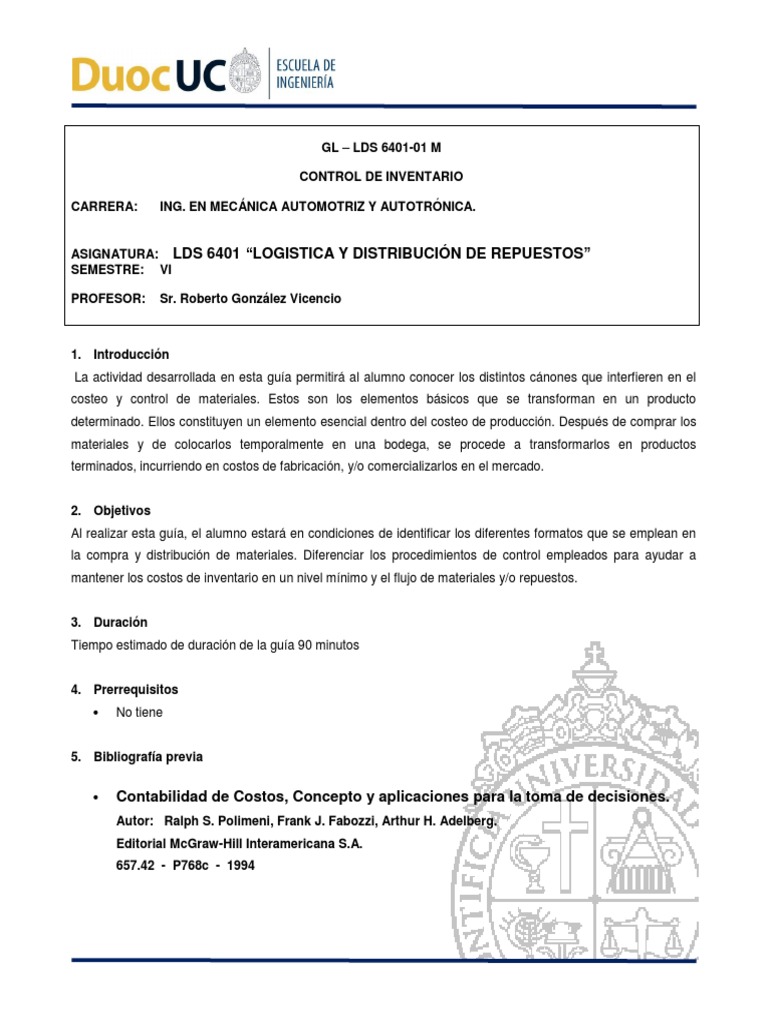Asignatura LOGISTICA, DISTRIBUCIÓN Y REPUESTOS Sigla LDS6401 Sección
