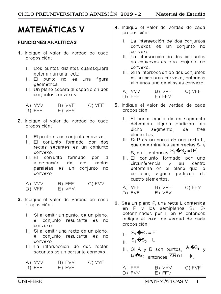 MATEMÁTICAS V 4. Indique el valor de verdad de cada