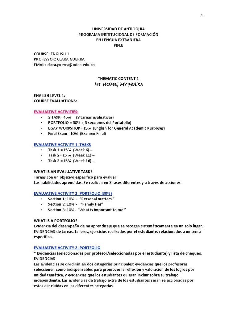 THEMATIC CONTENT 1: MY HOME, MY FOLKS