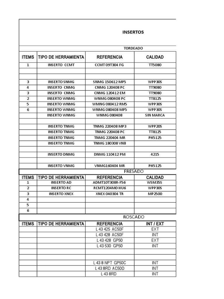 ITEMS TIPO DE HERRAMIENTA REFERENCIA CALIDAD