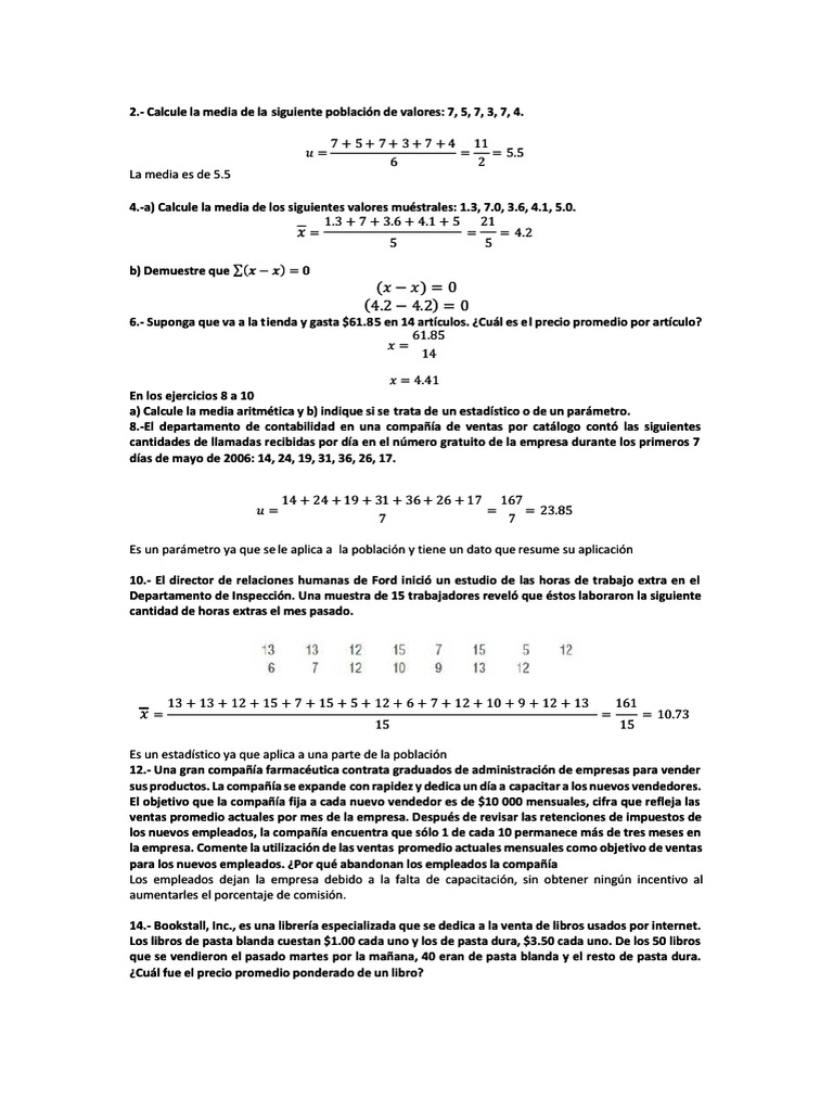 2.- Calcule la media de la siguiente población de valores: 7, 5, 7, 3, 7, 4.