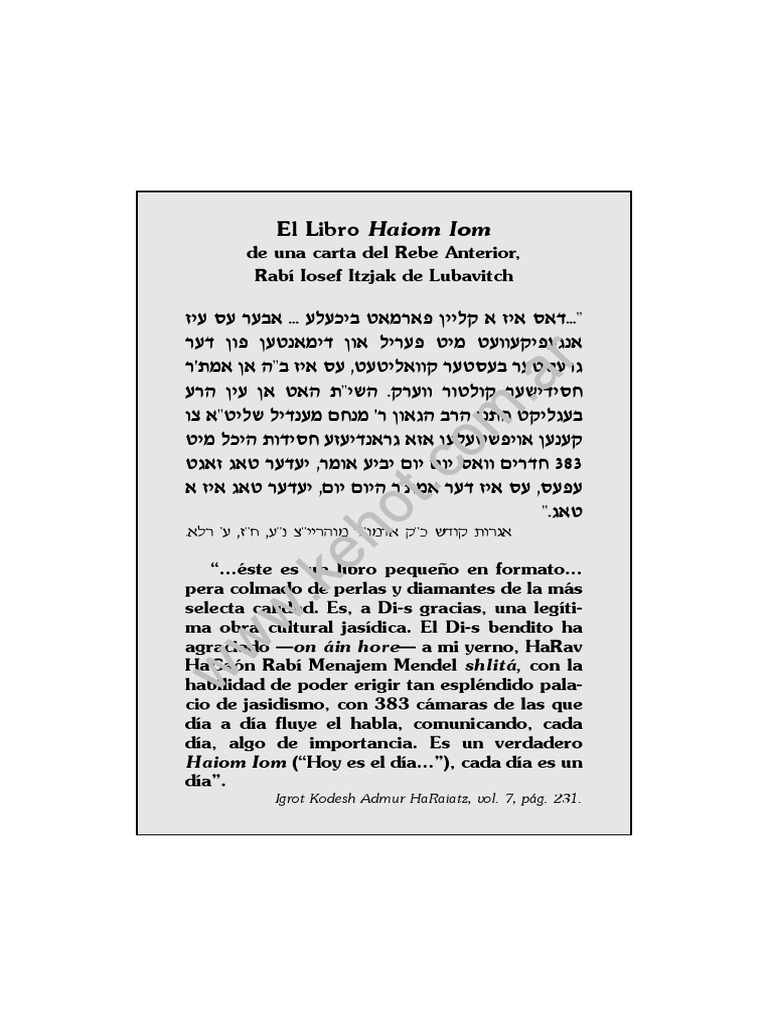 su memoria bendición—, escribe acerca del Haiom Iom...: