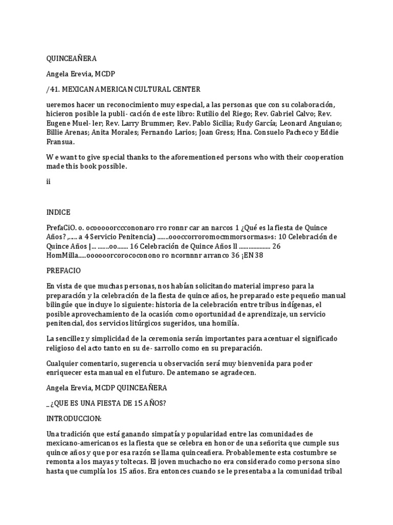 en el valor y en el significado de la fiesta de quince años. Podrá reunirse, como segunda