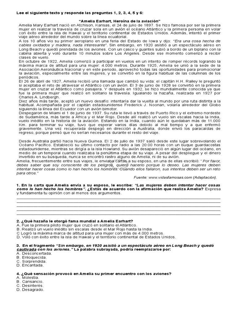 Lee el siguiente texto y responde las preguntas 1, 2, 3, 4, 5 y 6: