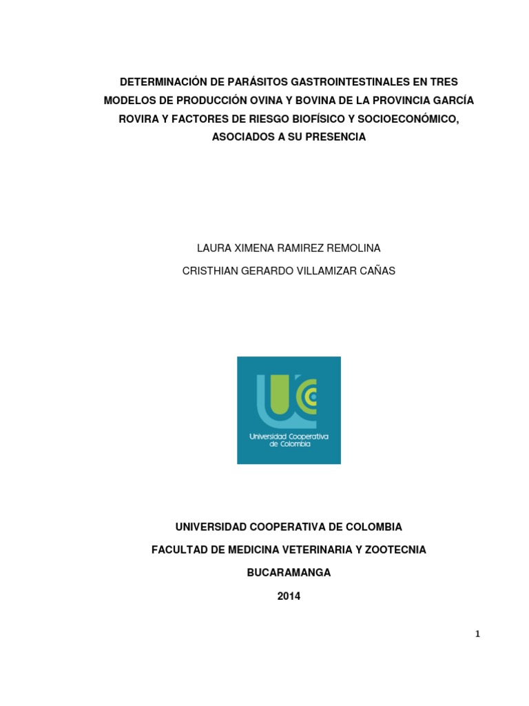 MARTÍNEZ O. Estudio de prevalencia de parásitos gastrointestinales en ovinos del municipio de Oicata – Boyacá. Tesis