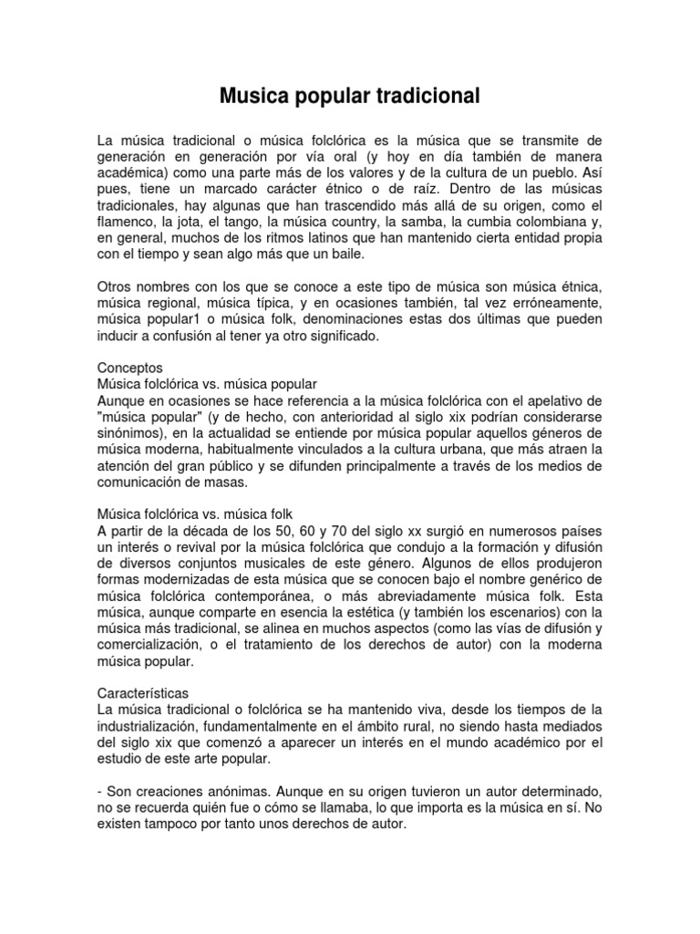 Frente a la música tradicional o folclórica, la música popular no se identifica con