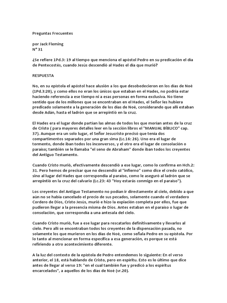 31. Pero hemos de precisar que no descendió al "infierno" como dice el credo católico,