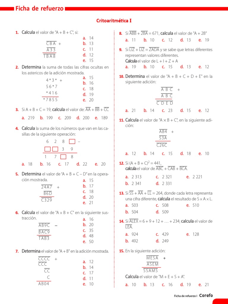 a. 15 10. Determina el valor de "A + B + C + D + E" en la