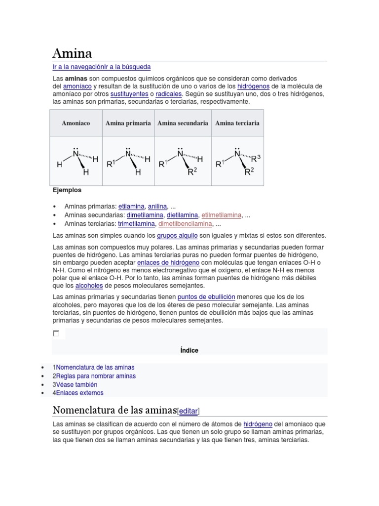 se sustituyen por grupos orgánicos. Las que tienen un solo grupo se llaman aminas primarias,