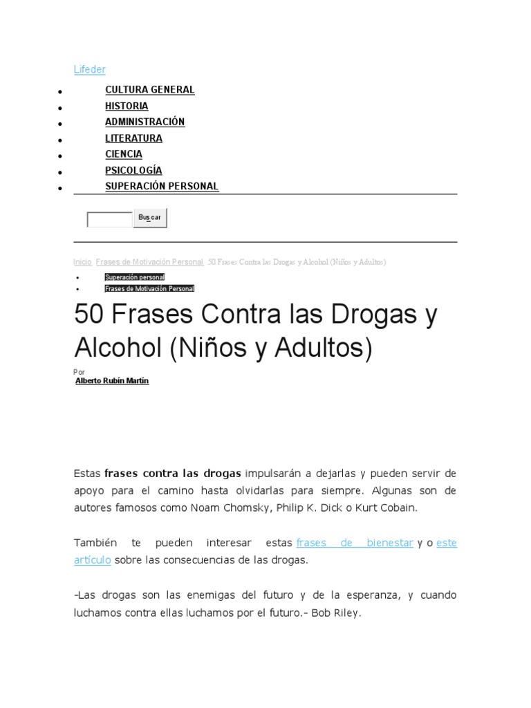 Inicio Frases de Motivación Personal 50 Frases Contra las Drogas y Alcohol (Niños y Adultos)