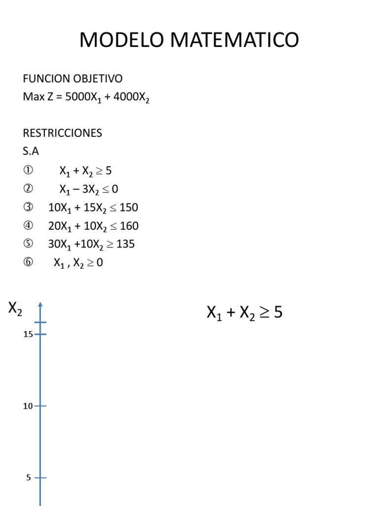 15 Cuando X1 = 0, X2 = 5 (0,5)