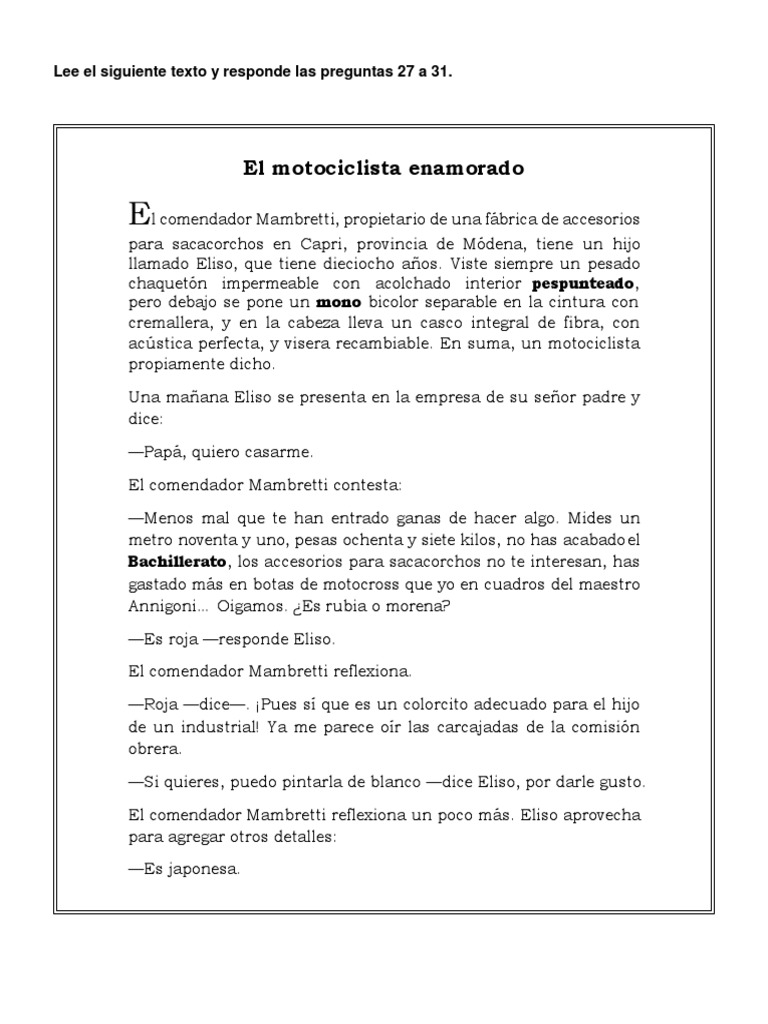 Lee el siguiente texto y responde las preguntas 27 a 31.