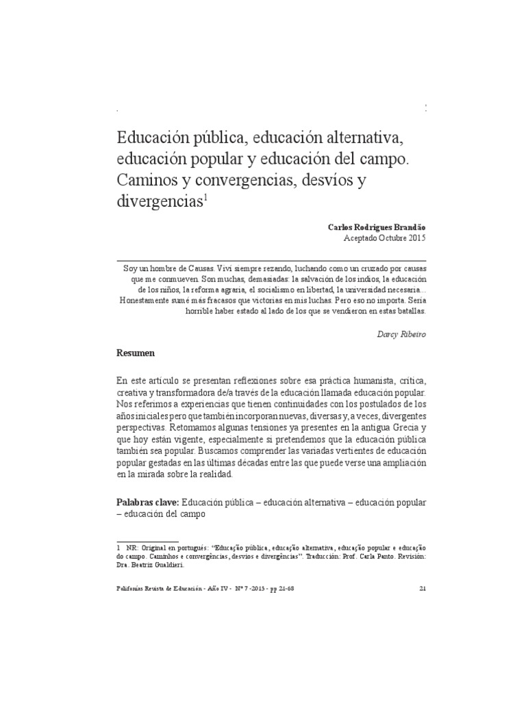 1 NR: Original en portugués: “Educação pública, educação alternativa, educação popular e educação