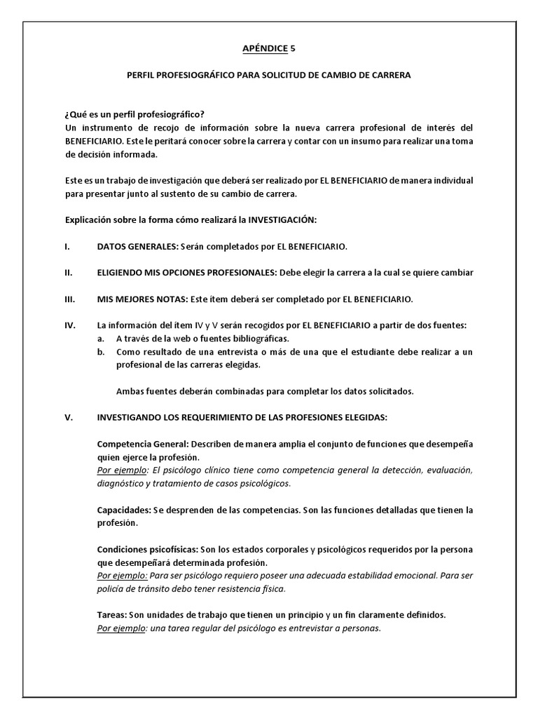 PERFIL PROFESIOGRÁFICO PARA SOLICITUD DE CAMBIO DE CARRERA