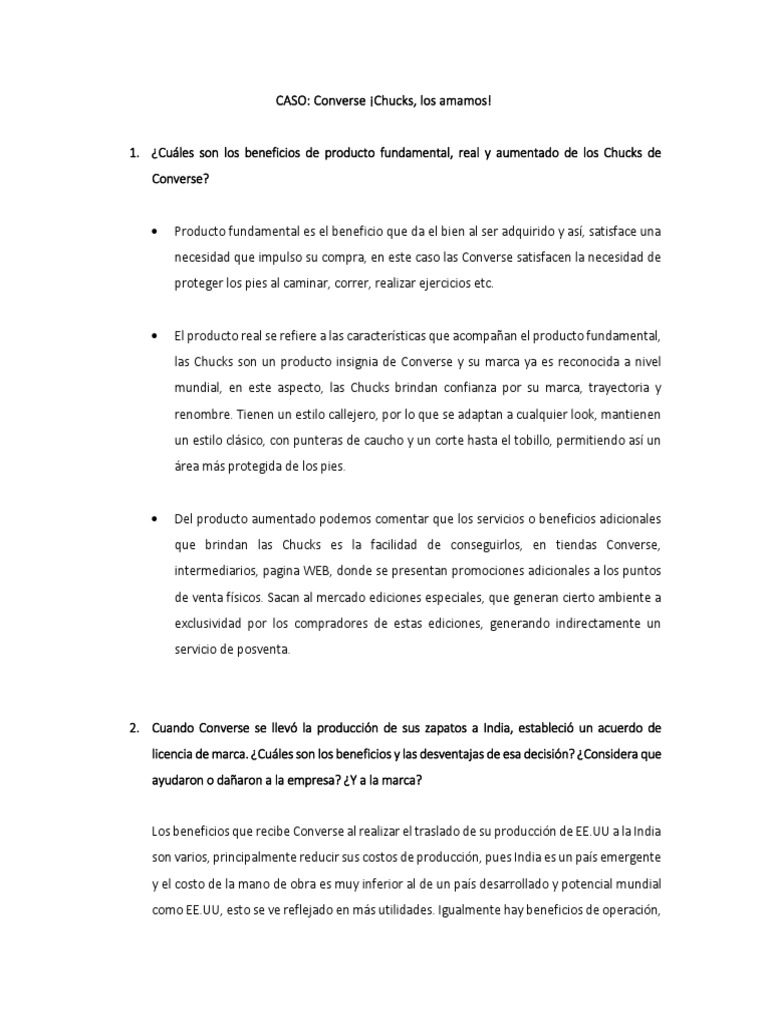 2. Cuando Converse se llevó la producción de sus zapatos a India, estableció un acuerdo de
