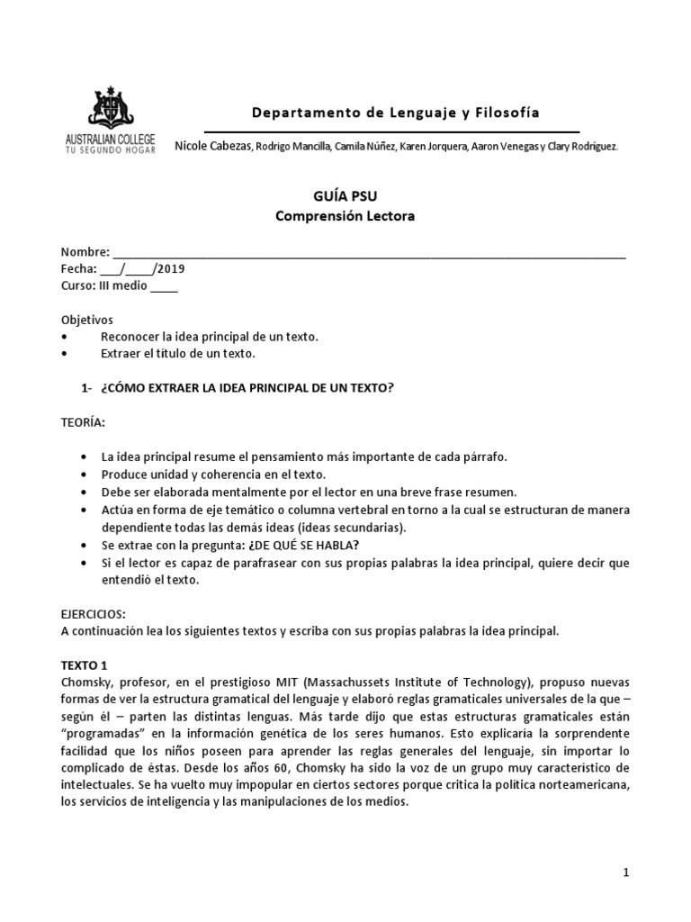 1- ¿CÓMO EXTRAER LA IDEA PRINCIPAL DE UN TEXTO?
