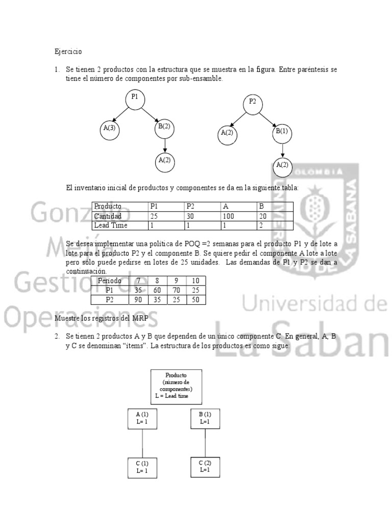 2. Se tienen 2 productos A y B que dependen de un único componente C. En general, A, B