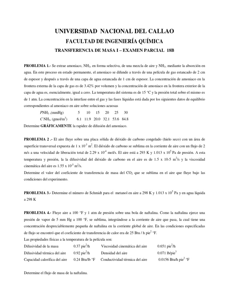 TRANSFERENCIA DE MASA I – EXAMEN PARCIAL 18B