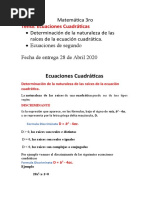 ecuación cuadrática consta de dos valores llamados raíces de la ecuación. (Constanza,