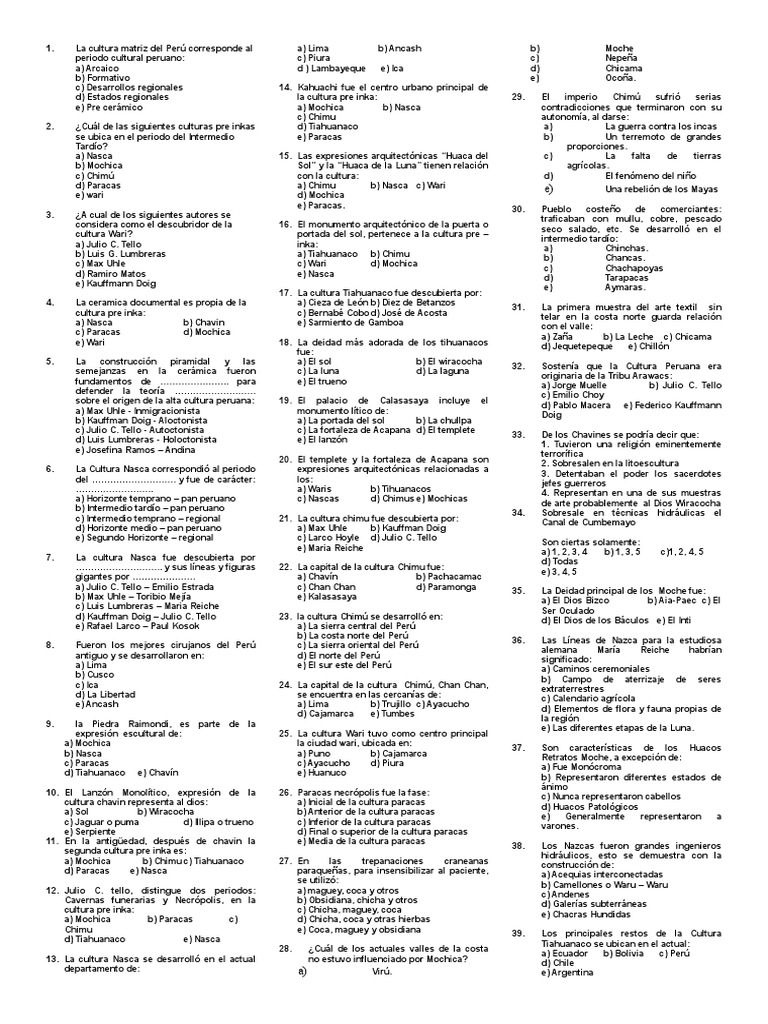 La cultura matriz del Perú corresponde al a) Lima b) Ancash b) Moche