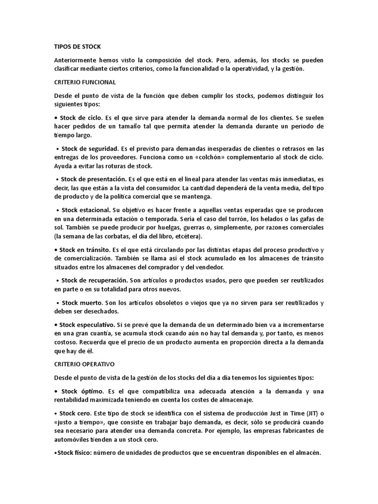 Desde el punto de vista de la gestión de los stocks del día a día tenemos los siguientes tipos: