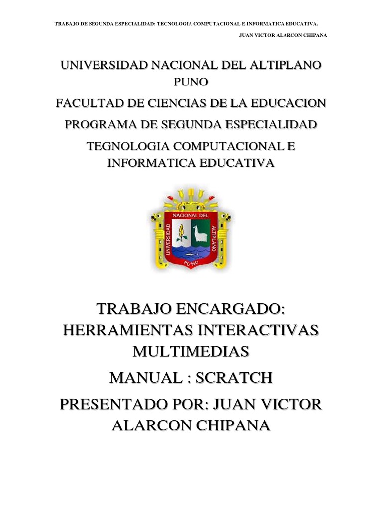 TRABAJO DE SEGUNDA ESPECIALIDAD: TECNOLOGIA COMPUTACIONAL E INFORMATICA EDUCATIVA.
