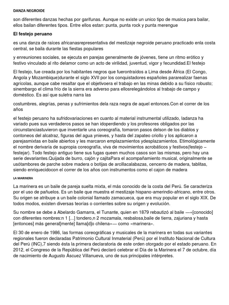 es una danza de raíces africanasrepresentativa del mestizaje negroide peruano practicado enla costa
