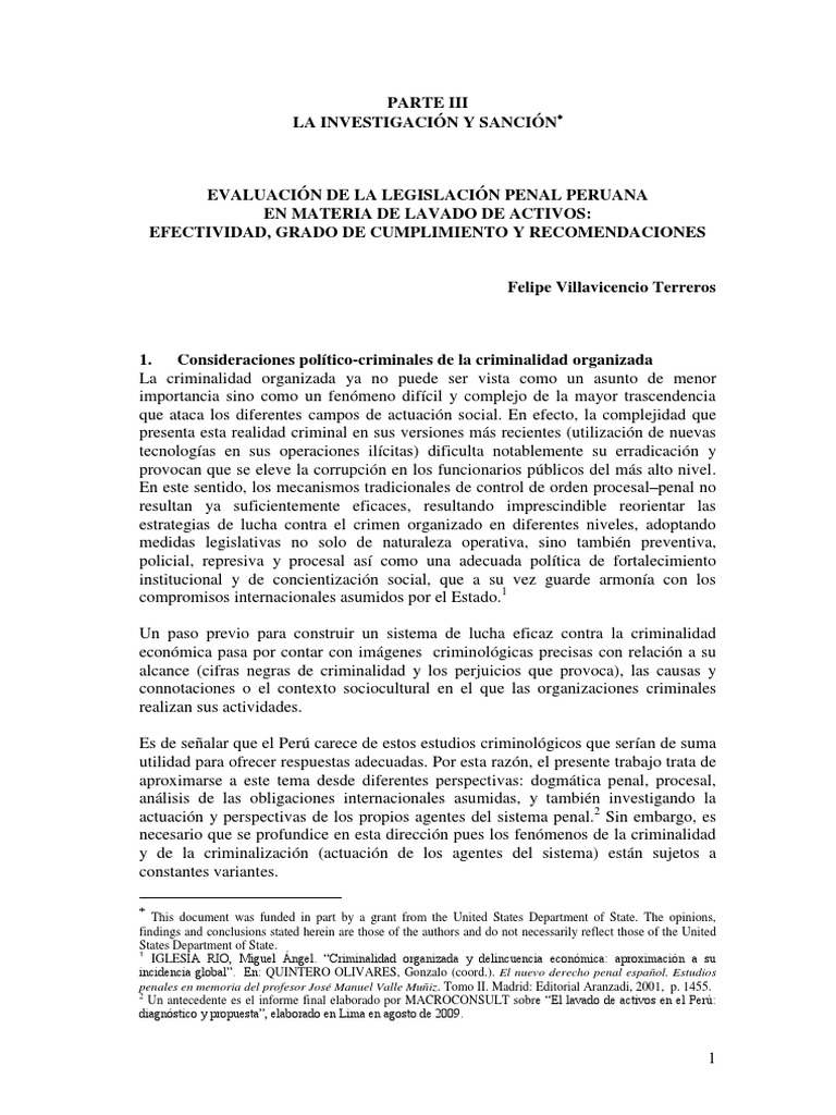 Un antecedente es el informe final elaborado por MACROCONSULT sobre ―El lavado de activos en el Perú: