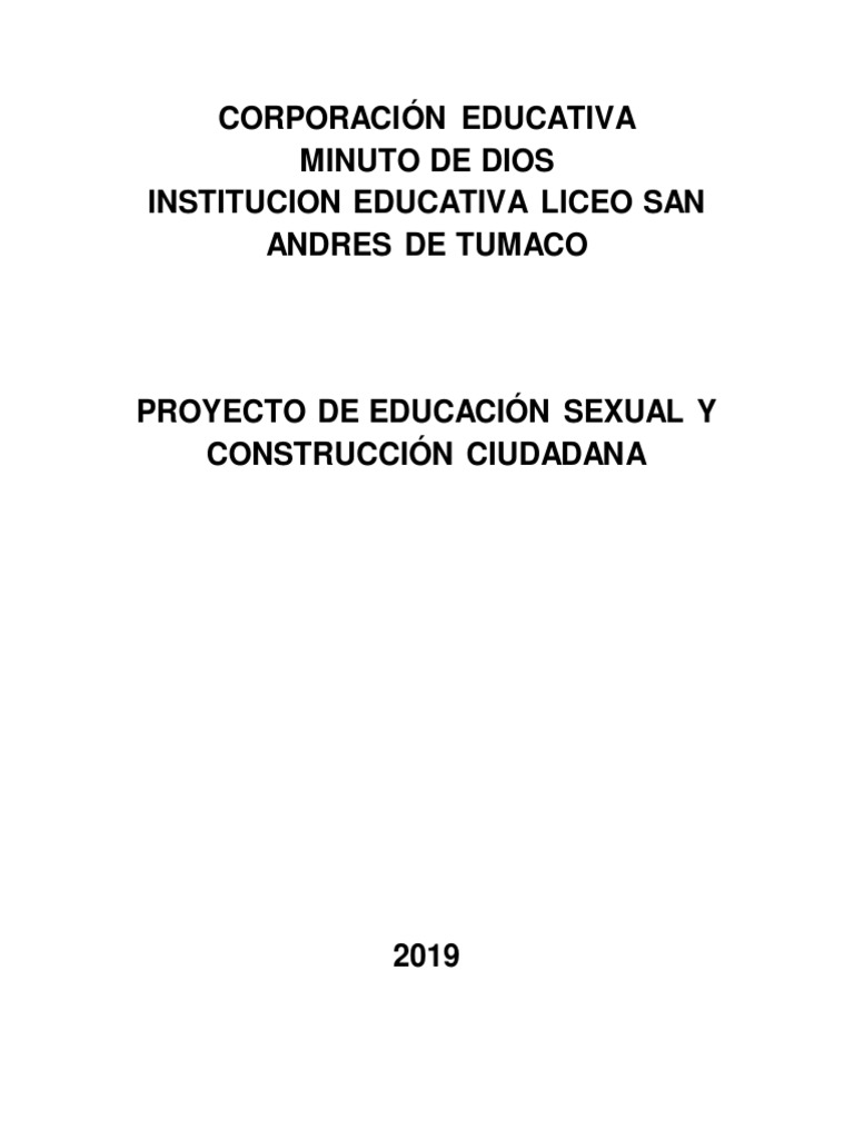 El desarrollo y aplicación del proyecto de Educación Sexual en el año 2019 se hará de una
