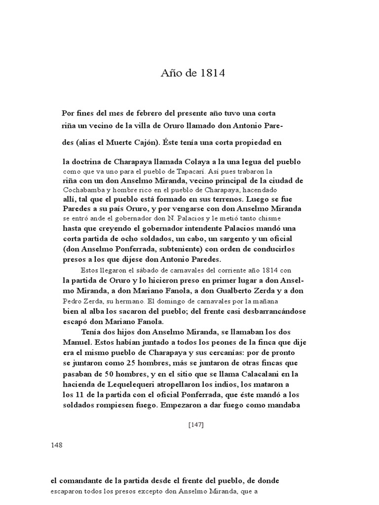 la partida de Oruro y lo hicieron preso en primer lugar a don Ansel-