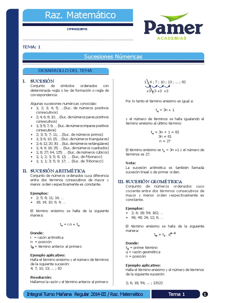 II. SUCESIÓN ARITMÉTICA sucesión lineal o de primer orden.
