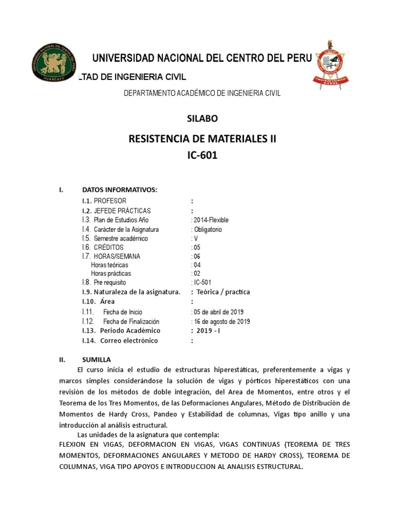 1. Eduardo Temoche, APUNTES DE CLASE RESISTENCIA DE MATERIALES I Y II, Universidad