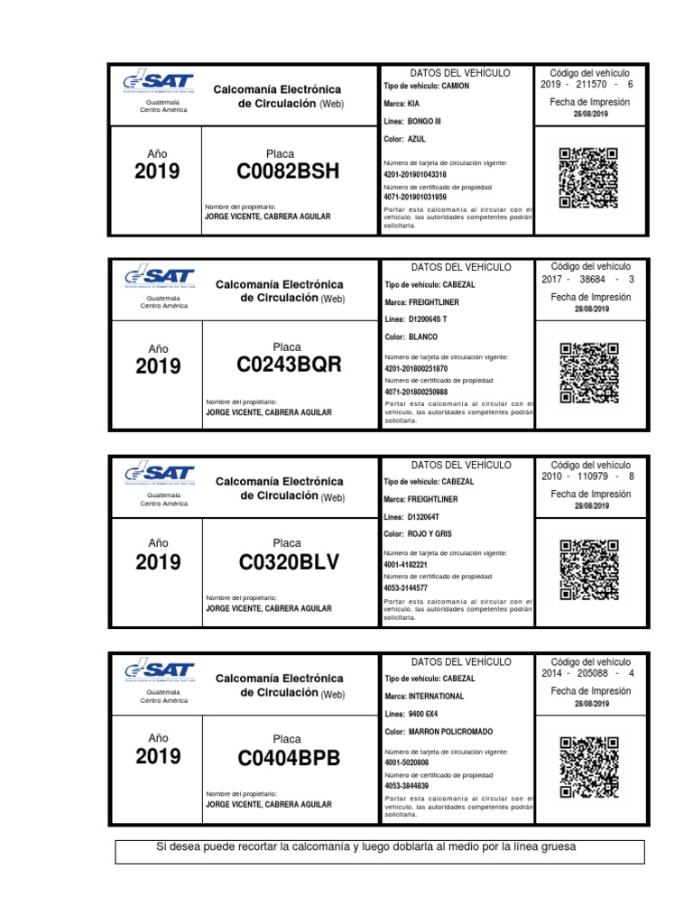 Guatemala de Circulación (Web) Marca: FREIGHTLINER Fecha de Impresión