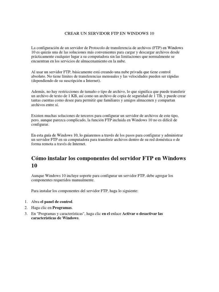 Aunque Windows 10 incluye soporte para configurar un servidor FTP, debe agregar los