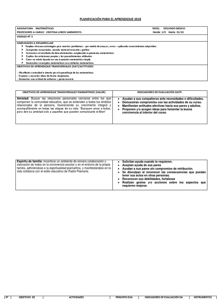 PLANIFICACIÓN PARA EL APRENDIZAJE 2018