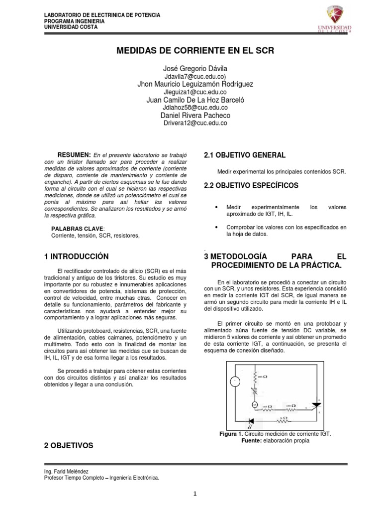 en convertidores de potencia, sistemas de protección, con un SCR, y unos resistores. Esta experiencia consistió