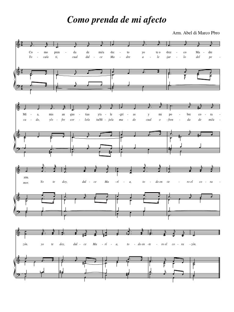 Co - mo pren - da de mi/a -fec - to yo te o -frez - co Ma - dre
