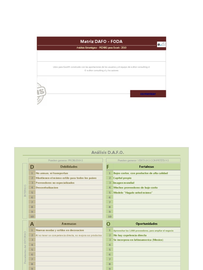 Análisis Estratégico - PE248G para Excel© 2010