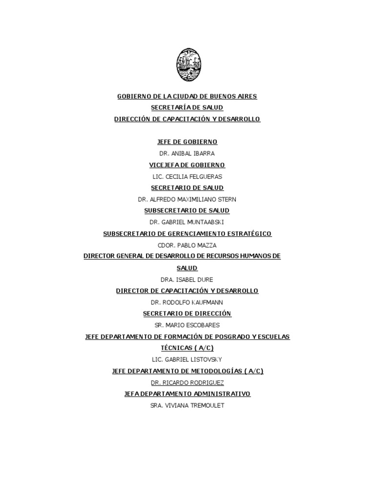 Secretaría de Salud del GCBA – DIRECCION DE CAPACITACION Y DESARROLLO
