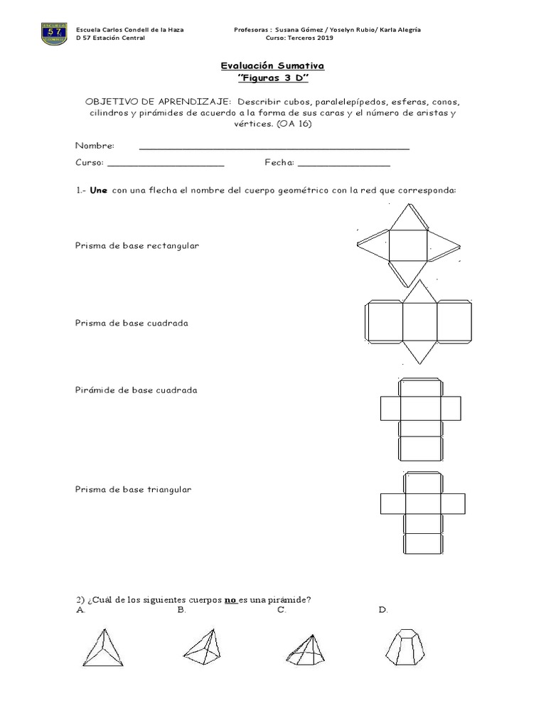 1.- Une con una flecha el nombre del cuerpo geométrico con la red que corresponda: