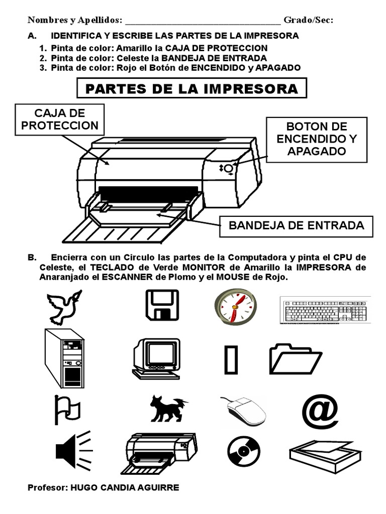 A. IDENTIFICA Y ESCRIBE LAS PARTES DE LA IMPRESORA