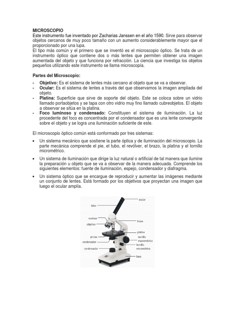 Este instrumento fue inventado por Zacharias Janssen en el año 1590. Sirve para observar