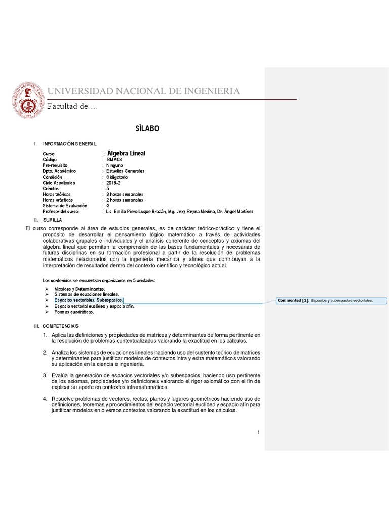 ⮚ Espacios vectoriales. Subespacios. Commented [1]: Espacios y subespacios vectoriales.
